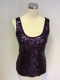 MONSOON PURPLE SEQUINNED SLEEVELESS TOP SIZE 10