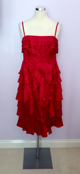 Monsoon Red Silk Tiered Skirt Occasion Dress Size 14