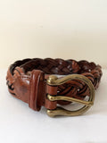 MULBERRY BROWN PLAITED LEATHER BRASS BUCKLE BELT