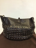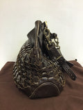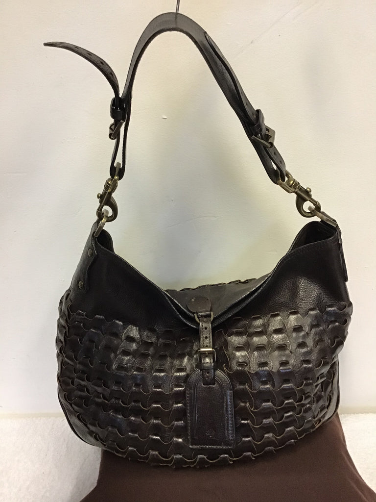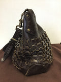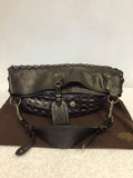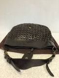 MULBERRY DARK BROWN LEATHER JULIE RIO WOVEN BODY SHOULDER BAG