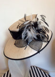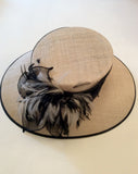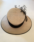 Natural Straw & Black Wide Brim Feather Trim Formal Hat