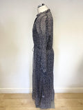 NEO NOIR SILO BLACK, GREY & PINK DITSY FLORAL PRINT LONG SLEEVED MAXI DRESS SIZE S