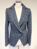 NESS BLUE CHECK WOOL MIX TWEED TAILORED BLAZER SIZE 10