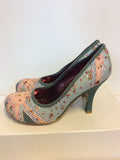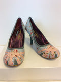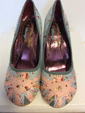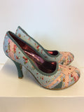 NEW EX DISPLAY IRREGULAR CHOICE BLUE & PINK FLORAL PRINT HEELS SIZE 5/38