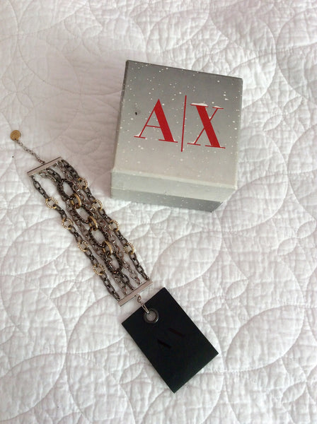 New In Box Armani Exchange 5 Strand Metallic Chain Bracelet With Diamanté Trims