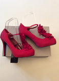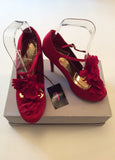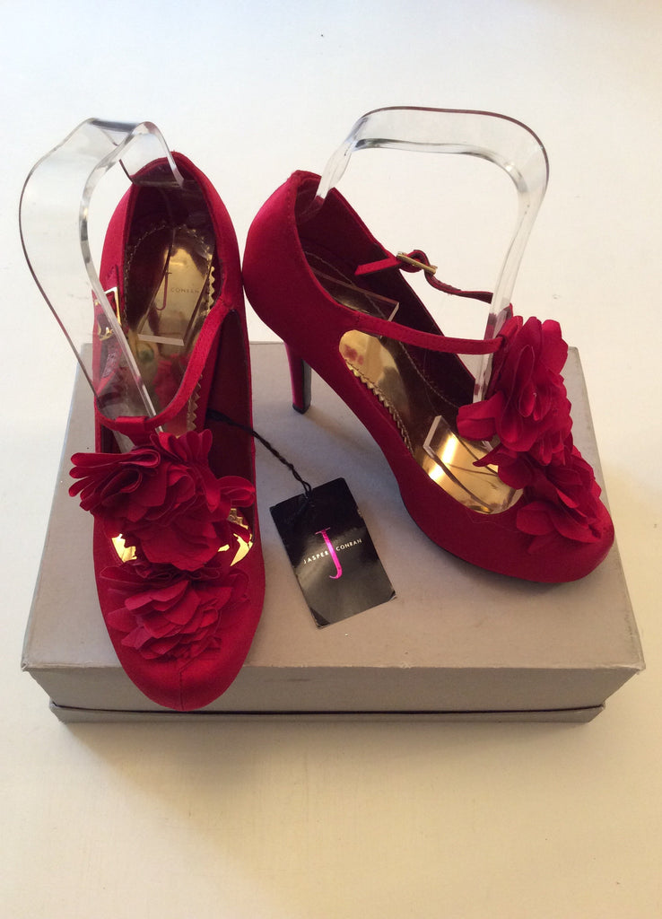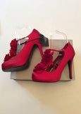 NEW JASPER CONRAN RED SATIN CORSAGE TRIM HEELS SIZE 3/36