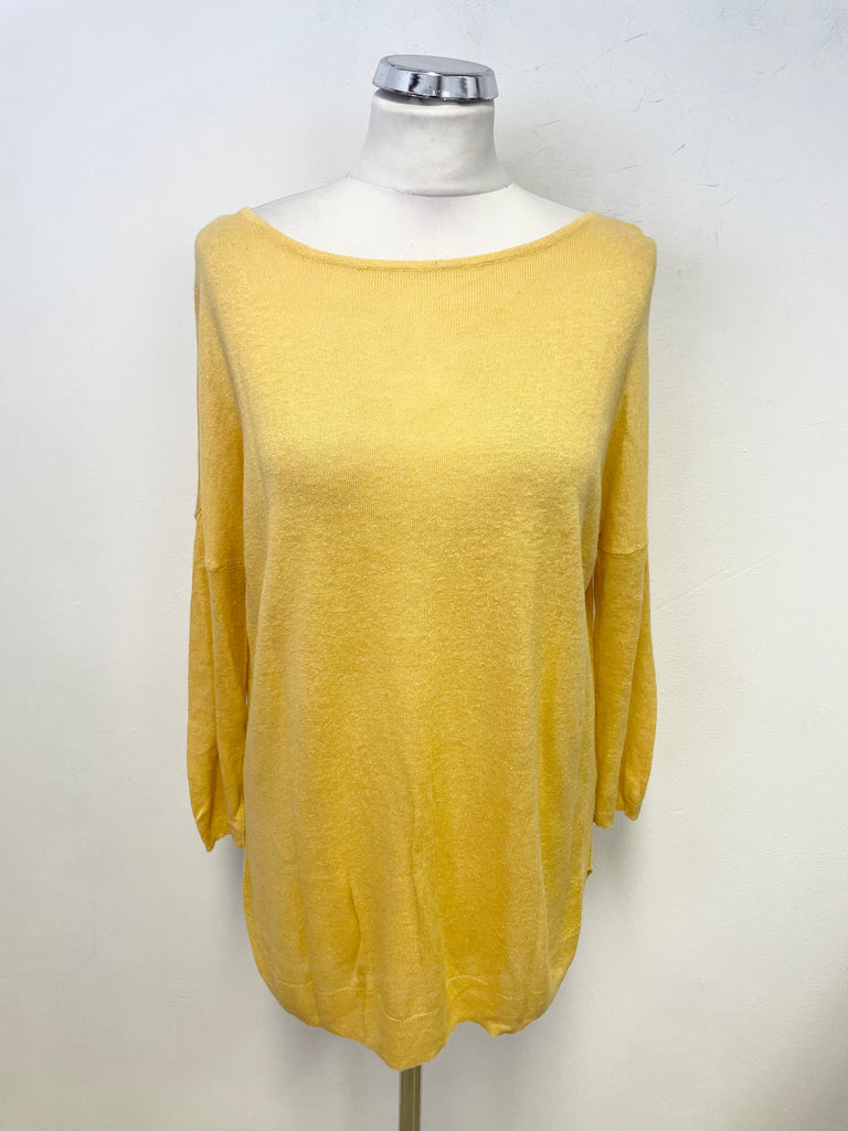 NICOLE FARHI MARIGOLD YELLOW LINEN BLEND FINE KNIT JUMPER SIZE M