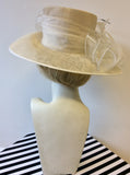 NIGEL RAYMENT IVORY & WHITE WITH BLACK FEATHER TRIM FORMAL HAT