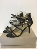 NINE WEST CHARCOAL SPARKLE STRAPPY HEEL SANDALS SIZE 4.5 / 37.5