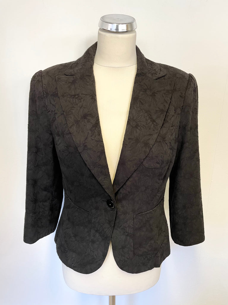 NOA NOA QUEENS CLUB BLACK FLORAL EMBOSSED FITTED JACKET SIZE M