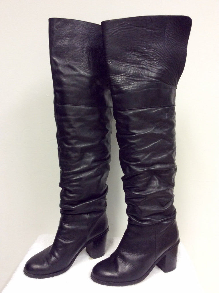 OFFICE BLACK LEATHER OVER KNEE/KNEE LENGTH BOOTS SIZE 6/39