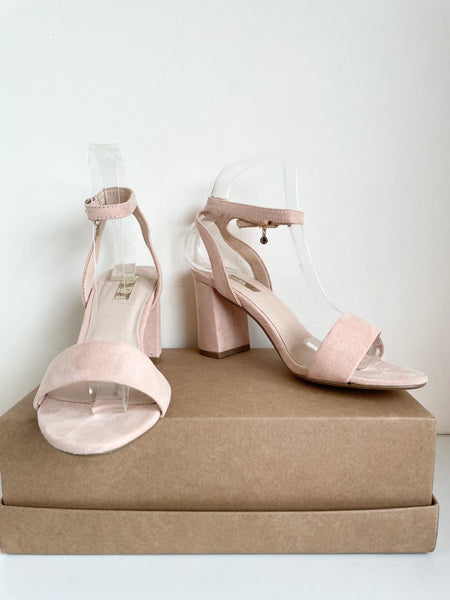 OFFICE NUDE FAUX SUEDE BLOCK HEEL SANDALS SIZE 5/38