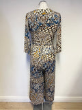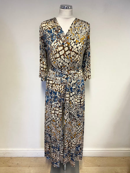 ONJENU LONDON MULTI COLOURED PRINT BELTED JUMPSUIT SIZE 10