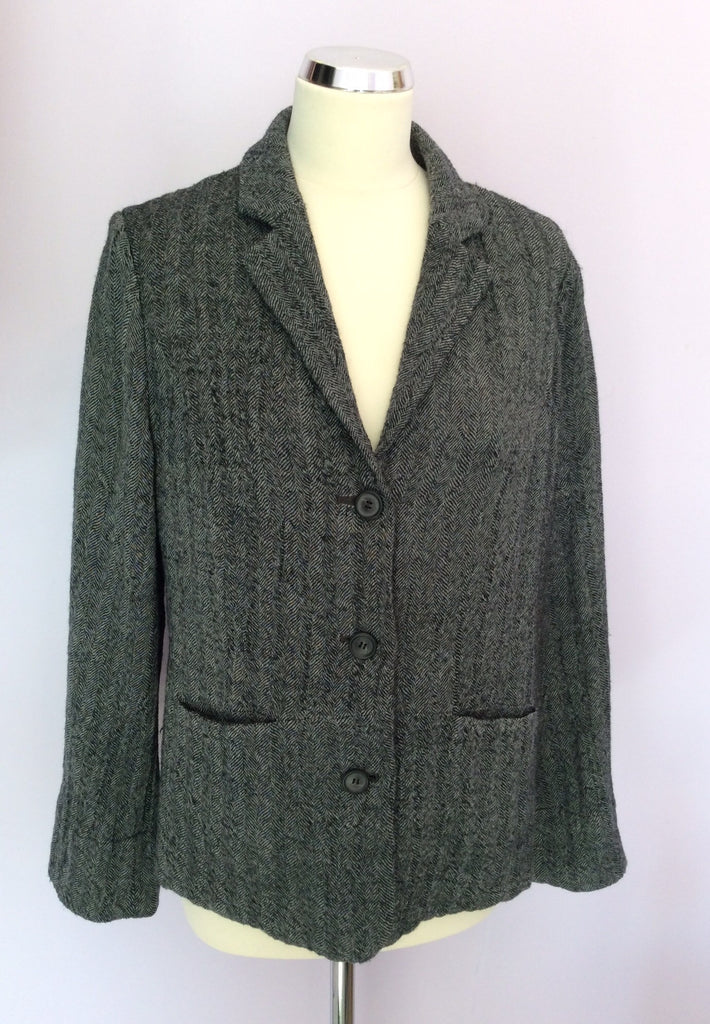 Oska Grey & Black Herringbone Design Wool Jacket Size 1 UK 12/14