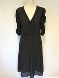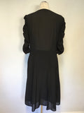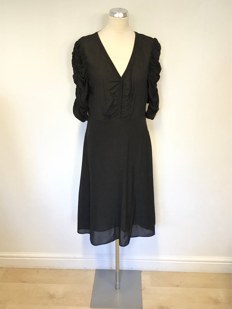 & OTHER STORIES BLACK SILK BLEND V NECKLINE 3/4 SLEEVE TEA DRESS SIZE 12/14