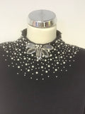 HIGH NECK WITH A LOW OPEN V BACK WITH EMBELLISHMENT