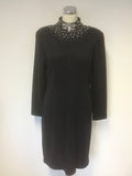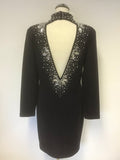 OUTLANDER NAVY BLUE PEARL & JEWEL TRIM LOW V BACK LONG SLEEVE KNIT DRESS SIZE L