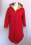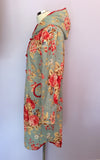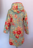 Pale Blue & Red Floral Print Cotton Hooded Lightly Padded Coat Size S/M