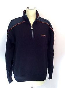 Paul & Shark Yachting Watershed Dark Blue Zip Neck Wool Jumper Size M