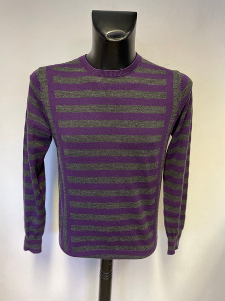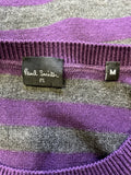 PAUL SMITH 100% MERINO WOOL PURPLE & GREY STRIPE JUMPER SIZE M