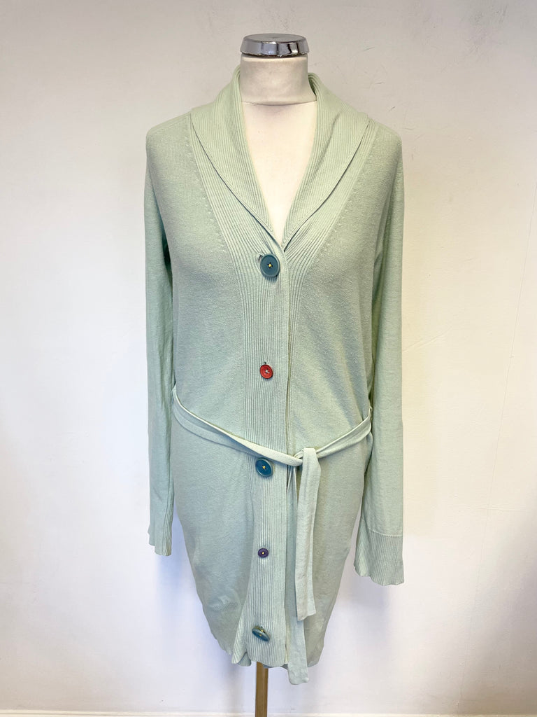 PAUL SMITH LIGHT GREEN COTTON & LINEN BLEND BELTED CARDIGAN SIZE M