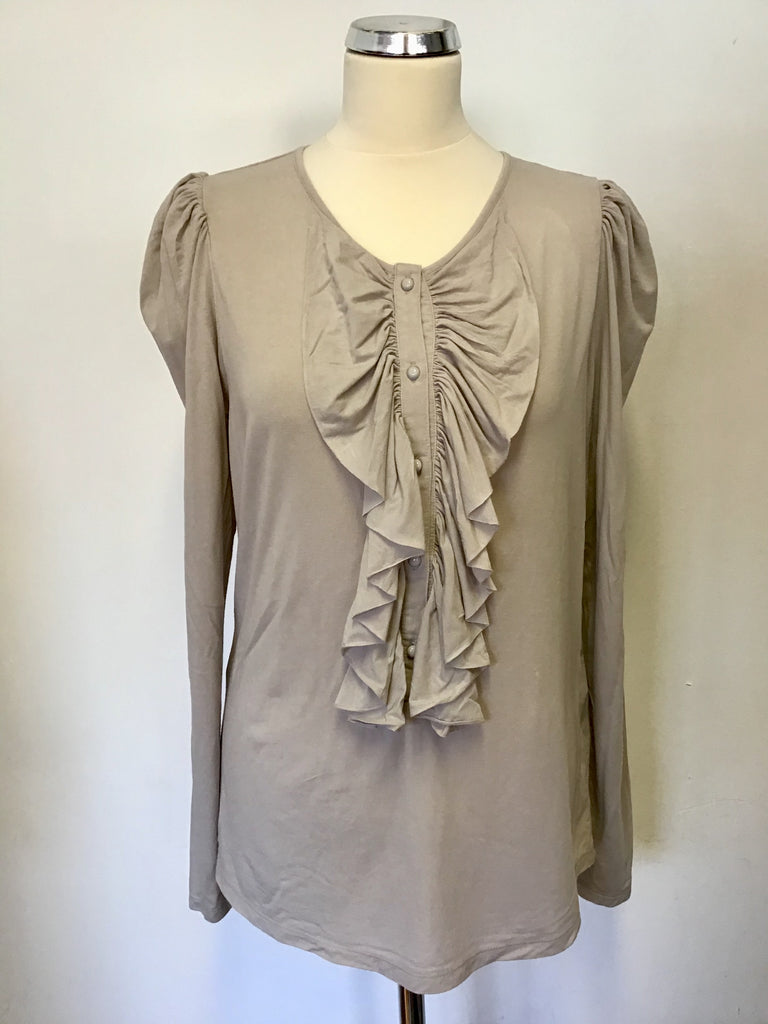 PENNY BLACK BEIGE STRETCH JERSEY RUFFLE TRIM LONG SLEEVE TOP SIZE XL