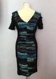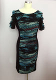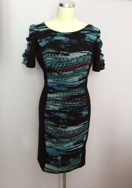 Per Una Black & Blue Print Insert Pencil Dress Size 10