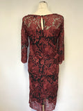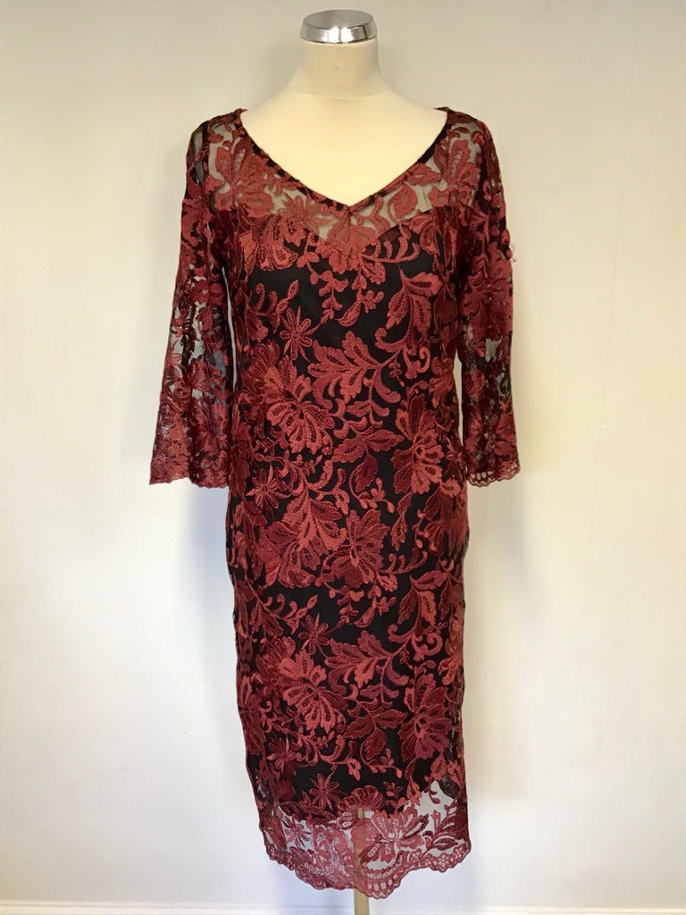 PER UNA BLACK & DARK RED LACE 3/4 SLEEVE SPECIAL OCCASION DRESS SIZE 10