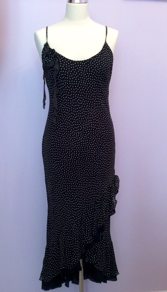 Per Una Black & White Spotted Strappy Frill Trim Dress Size 12R