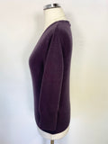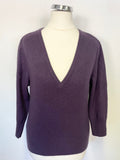 PER UNA PURPLE CASHMERE V NECK 3/4 SLEEVE JUMPER SIZE 12