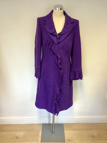 PER UNA PURPLE FRILL TRIM KNEE LENGTH COAT SIZE 12