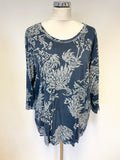 PERUVIAN CONNECTION BLUE FLORAL PRINT HALF SLEEVE TOP SIZE L