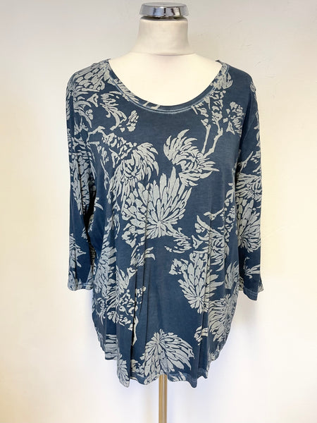 PERUVIAN CONNECTION BLUE FLORAL PRINT HALF SLEEVE TOP