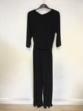 PHASE EIGHT BLACK 3/4 SLEEVE STRETCH JERSEY TIE BELT JUMPSUIT SIZE 16