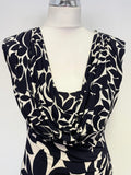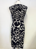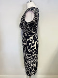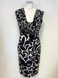 PHASE EIGHT BLACK & IVORY PRINT SLEEVELESS STRETCH JERSEY PENCIL DRESS SIZE 12