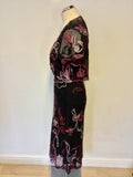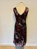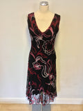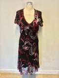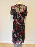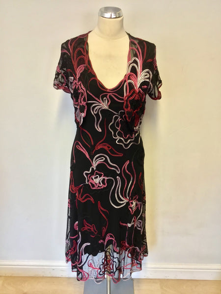 PHASE EIGHT BLACK,RED & PINKS APPLIQUÉ DESIGN DRESS & MATCHING BOLERO SIZE 14