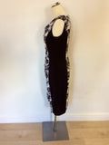 PHASE EIGHT BLACK,WHITE & GREY FLORAL PRINT STRETCH BODYCON DRESS SIZE 14