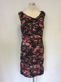 PHASE EIGHT BROWN & PINK FLORAL PRINT STRETCH PENCIL DRESS SIZE 14