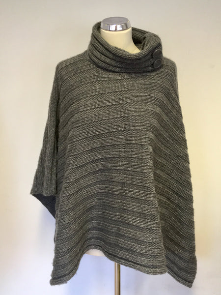 PHASE EIGHT DARK GREY BUTTON NECK TRIM PONCHO SIZE S/M