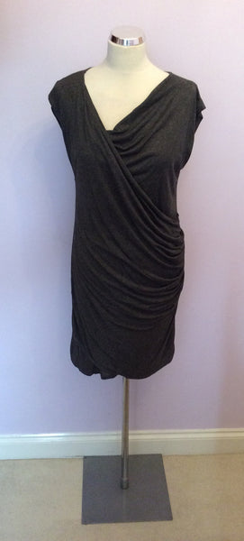 PHASE EIGHT DARK GREY STRETCH JERSEY DRAPED DRESS SIZE 14