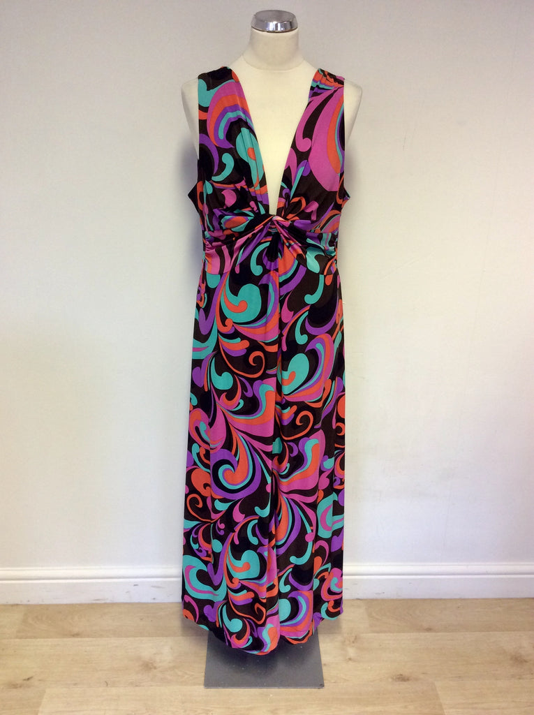 PHASE EIGHT MULTI COLOURED PRINT MAXI DRESS SIZE 18