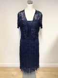 PHASE EIGHT NAVY BLUE BEADED LACE SPECIAL OCCASION DRESS & BOLERO TOP SIZE 18