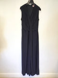 PHASE EIGHT NAVY BLUE SLEEVELESS TIE FRONT WIDE LEG JUMPSUIT & MATCHING LACE BOLERO SIZE 14