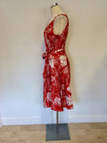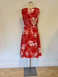PHASE EIGHT RED & WHITE FLORAL PRINT COTTON DRESS SIZE 12