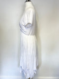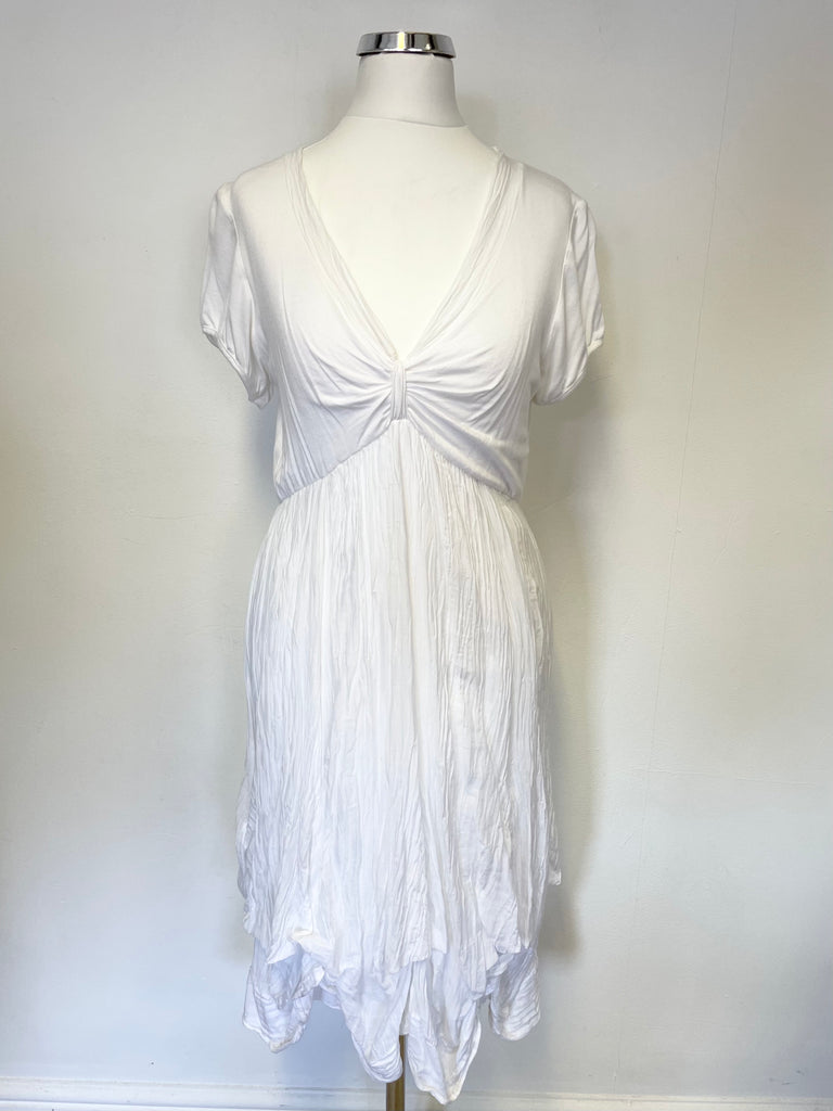 PHASE EIGHT WHITE SHORT SLEEVE STRETCH JERSEY & SILK PARACHUTE HEMLINE DRESS SIZE M
