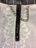 POLENCI GREY & SILVER PINSTRIPE BELTED DRESS SIZE 12