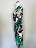 PRECIS PETITE BLACK,WHITE & GREEN FLORAL PRINT 3/4 SLEEVE STRETCH PENCIL DRESS SIZE 8