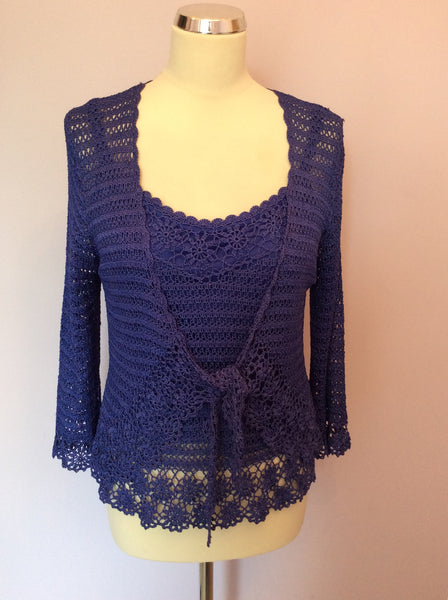 Précis Petite Blue Crocheted Camisole Top & Cardigan Size L