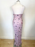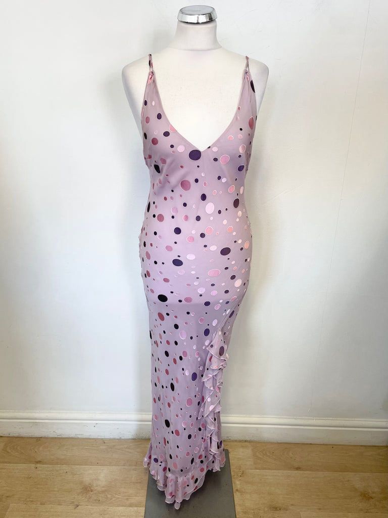 PRÉCIS PETITE LILAC SPOT SHOE STRING STRAP FRILL FRONT BIAS CUT LONG DRESS SIZE 8