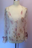 Pretty Ivory & Pink / Beige Floral Print Sheer Silk Blouse Size 16